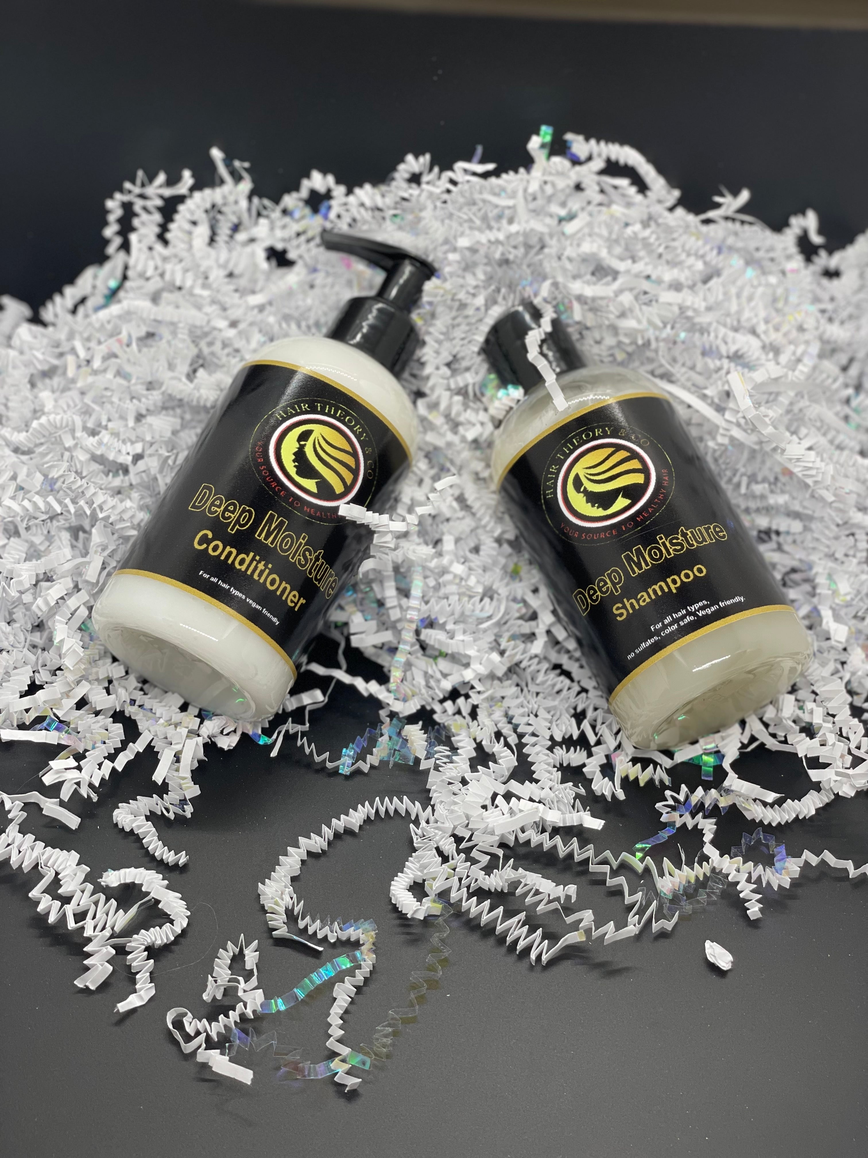 Introducing our Moisture Shampoo and Conditioner, a dynamic duo designed to transform your hair care routine into a luxurious and nourishing experience. At Hair Theory & Co, we believe that healthy, radiant hair begins with the right foundation, and our Moisture Shampoo and Conditioner set the stage for brilliance.